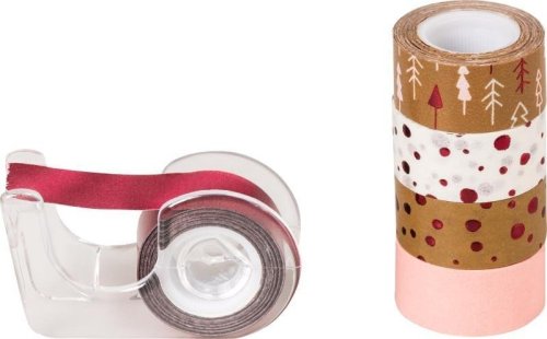 Balení obsahuje 5 typů ozdobných samolepicích pásek s odvíjecím strojkem. Každá rolička má rozměr 3m x 12mm. Velmi snadno se sundají, lze opětovně použít. Vhodné na ozdobení dárků, přáníček, scrapbookových projektů i dekorací v domácnosti.