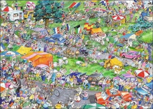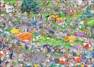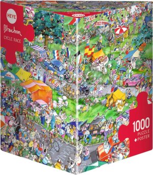Puzzle od karikaturisty Blachona balené v netradiční trojboké krabici, která obsahuje plakát jako předlohu pro skládání. Rozměr složeného puzzle cca 70 x 50 cm