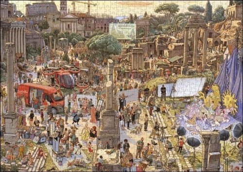 Puzzle od dua německých umělců Doro Göbela a Petera Knorra balené v netradiční trojboké krabici je výzvou pro každého milovníka skládání. Dva tisíce dílků na konci vytvoří kreslenou podobu příprav a focení módní přehlídky v antickém areálu Forum Romanum v Římě. Balení obsahuje plakát jako předlohu pro skládání. Rozměr složeného puzzle cca 97 x 69 cm