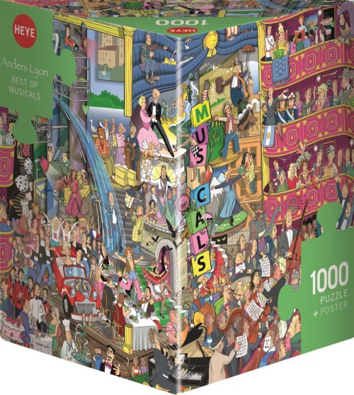 Puzzle od karikaturisty jménem Lyon v netradiční trojboké krabici, která obsahuje plakát jako předlohu pro skládání. Rozměr složeného puzzle cca 70 x 50 cm