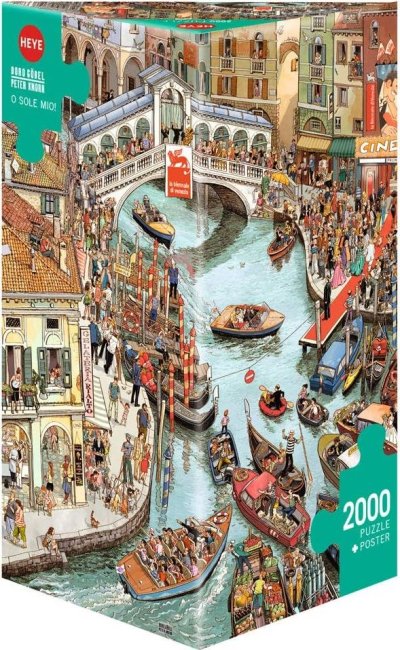 Puzzle balené v netradiční trojboké krabici, která obsahuje plakát jako předlohu pro skládání.