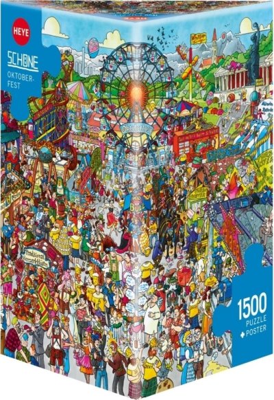Puzzle balené v netradiční trojboké krabici, která obsahuje plakát jako předlohu pro skládání.