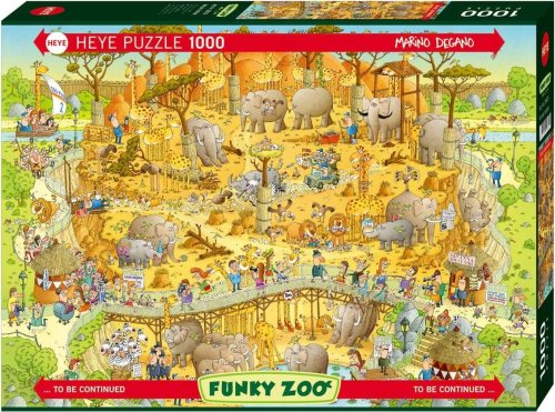 Chcete mít doma vlastní ZOO? Vytvořte si ji z puzzle ze série HEYE Šílená ZOO (Funky ZOO) , kterou vtipně ztvárnil známý karikaturista Marino Degano. Jednotlivé motivy se zvířecími "pavilony" lze zavěsit vedle sebe v libovolné kombinaci a vytvořit tak ZOO podle vlastních představ. Okrajové prvky (obloha, řeka, keře, cesta) jsou totiž namalovány tak, aby na sebe obrázky ze série Šílená ZOO vždy navazovaly, ať už jsou poskládány v jakémkoliv pořadí. Rozměr složeného puzzle cca 70 x 50 cm
