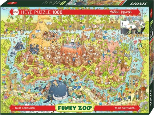Chcete mít doma vlastní ZOO? Vytvořte si ji z puzzle ze série HEYE Šílená ZOO (Funky ZOO) , kterou vtipně ztvárnil známý karikaturista Marino Degano. Jednotlivé motivy se zvířecími "pavilony" lze zavěsit vedle sebe v libovolné kombinaci a vytvořit tak ZOO podle vlastních představ. Okrajové prvky (obloha, řeka, keře, cesta) jsou totiž namalovány tak, aby na sebe obrázky ze série Šílená ZOO vždy navazovaly, ať už jsou poskládány v jakémkoliv pořadí. Rozměr složeného puzzle cca 70 x 50 cm