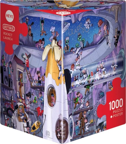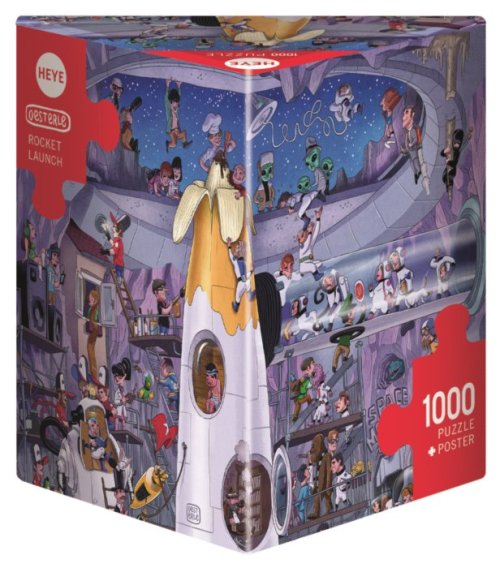 Puzzle od umělce Uli Oesterle balené v netradiční trojboké krabici. Karikatura plná barev a tvarů. Balení obsahuje plakát jako předlohu pro skládání. Rozměr složeného puzzle cca 50 x 70 cm