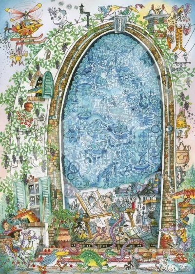 Puzzle od karikaturisty jménem Korky Paul v netradiční trojboké krabici, která obsahuje plakát jako předlohu pro skládání. Rozměr složeného puzzle cca 50 x 70 cm