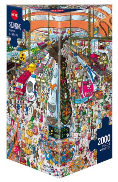 Puzzle od německého umělce Doro Cristopha Schöna balené v netradiční trojboké krabici je výzvou pro každého milovníka skládání. Poskládejte si rušné vlakové nádraží plné vlakových souprav, uspěchaných postav a tradičního nádražního chaosu.