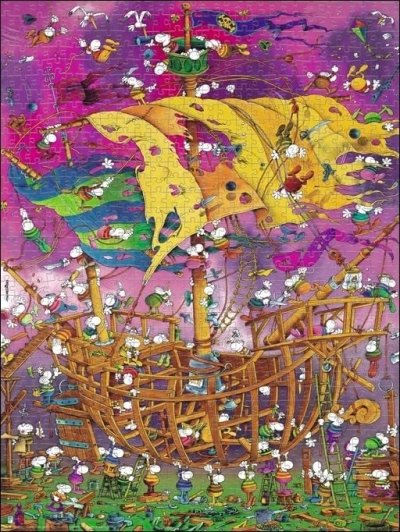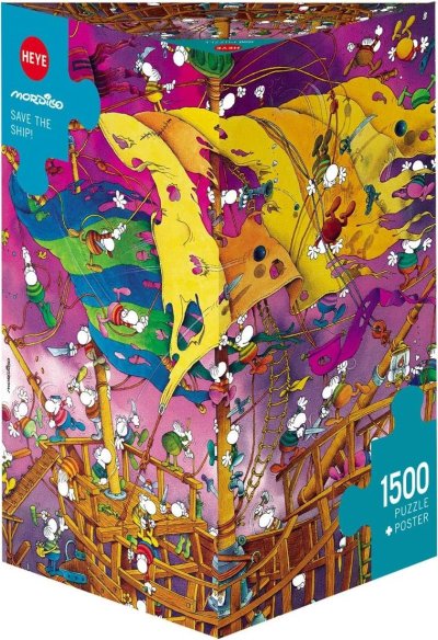 Puzzle od karikaturisty Guillerma Mordilla balené v netradiční trojboké krabici, která obsahuje plakát jako předlohu pro skládání. Rozměr složeného puzzle cca 60 x 80 cm