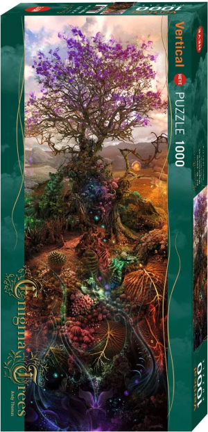 Vertikální puzzle ze série Enigma Trees balené v krásné panoramatické (vertikální) krabičce. Rozměr složeného puzzle cca 33 x 95 cm