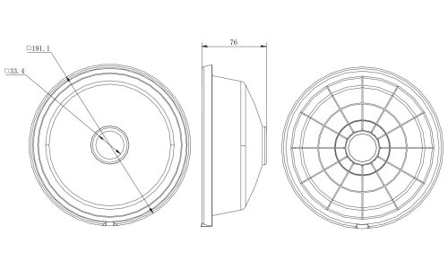 Rozměry: 191,1 × 191,1 × 76 mm