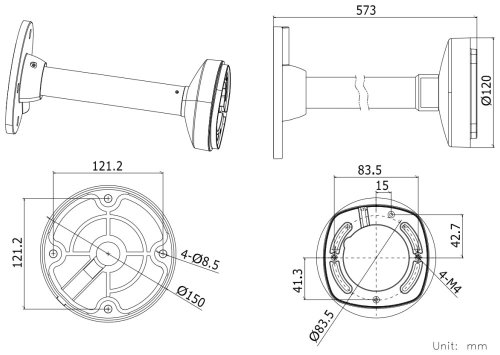 Stropní držák pro dome kamery Hikvision série D7xx. Zeď musí unést více než 3krát větší hmotnost, než je celková hmotnost kamery a držáku.