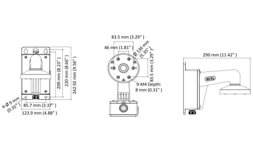 Nástěnný držák s montážním boxem pro dome kamery Hikvision série D6xx. Konstrukce s otvory pro kabely usnadňuje jejich vedení. Zeď musí unést více než 3krát větší hmotnost, než je celková hmotnost kamery a držáku.