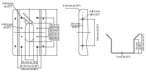 Rohový držák pro dome kamery Hikvision série D6xx. Zeď musí unést více než 3krát větší hmotnost, než je celková hmotnost kamery a držáku.