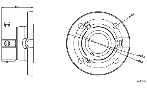 Rozměry: 116,5 × 116,5 × 57 mm