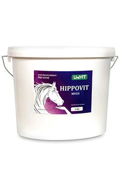 HIPPOVIT MYCO je bezprašný přípravek, který obsahuje Mycosorb, organický vyvazovač mykotoxinů na bázi kvasinek. Kvasinkový derivát je ve střevech schopen na sebe vázat toxin a znemožnit mu tak vstřebávání do krevního řečiště. Komplex mykotoxinu a Mycosorb je posléze vyloučen trusem z organizmu. Jedná se o čistě přírodní produkt, který se sám nevstřebává, pouze organismem prochází. Působí na celou škálu mykotoxinů. Menší zatížení organismu koně zlepšuje využitelnost živin. Použití přípravku zlepší zdravotní stav, výkonnost a plodnost. Pozitivní vliv na plodnost se projeví v lepším zabřezávání klisen. Přípravek dále obsahuje D,L-methionin, který zvyšuje nutriční úroveň KD.