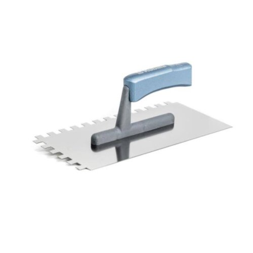 hladítko nerezové 270 x 130 mm - zub buková, lakovaná, ergonomická rukojeť nerezový, kyselině odolný plech tl. 0,7 mm nanášení lepidel, velikost zubů proporcionálně k velikosti obkladaček