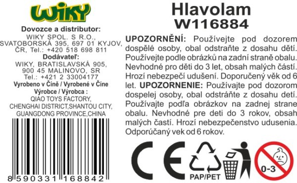 Hlavolam. Balení obsahuje 8 ks hlavolamů. Vyrobeny z kovu. Návod se nachází na zadní straně obalu.