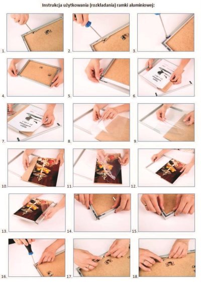 Rámeček vyrobený z odolného hliníku Přední krycí plastové „sklo“ Zadní stěna z HDF dřevěné desky S háčkem na zavěšení Rozměry orámování: šířka 6,0 mm x výška 20,0 mm Rozměry: 700 x 1000 mm