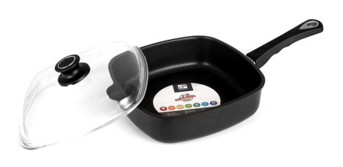 Prohlédněte si čtvercovou, 8 cm vysokou pánev, která splňuje všechny uvedené požadavky na dokonalou pánev. Je univerzální pro všechny typy ohřevů, teplo vede dokonale rovnoměrně, jídlo se na ní díky speciální nepřilnavé vrstvě LOTAN® nepřipaluje a smažit či zapékat můžete bez použití oleje.