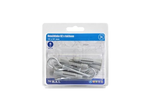 Uzlovací hmoždinka s háčkem 10 x 61 mm pro tenké nebo duté stavební materiály zajistí pevné kotvení pomocí vzniklého uzlu při utahování vrutu.