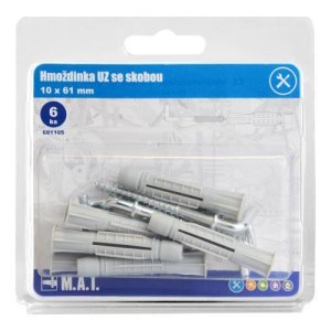 rozměry (pr. x D): 10 x 61 mm materiál: bílý zinek skoba 6 ks Uzlovací hmoždinka se skobou 10 x 61 mm pro tenké nebo duté stavební materiály zajistí pevné kotvení pomocí vzniklého uzlu při utahování …