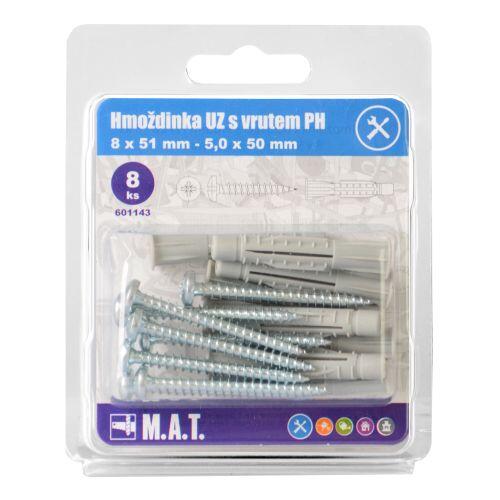 hmoždinka uzlovací s lemem 8x51 UH-L vrut un. celozávit 5x50mm ZB PH