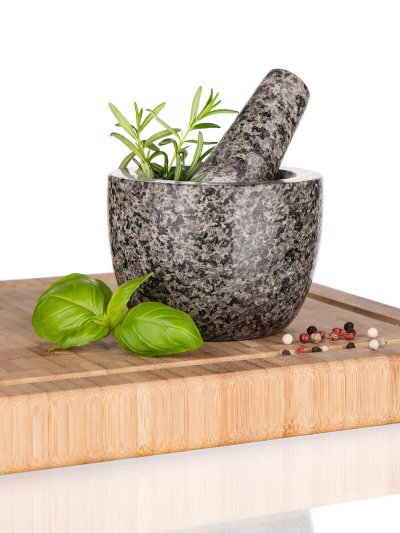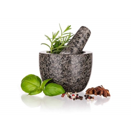 Žulový hmoždíř CULINARIA s tloučkem pro klasické drcení koření, bylinek a výrobu domácího pesta. Hmoždíř si najde své místo v každé kuchyni jako užitečný pomocník i ozdoba.