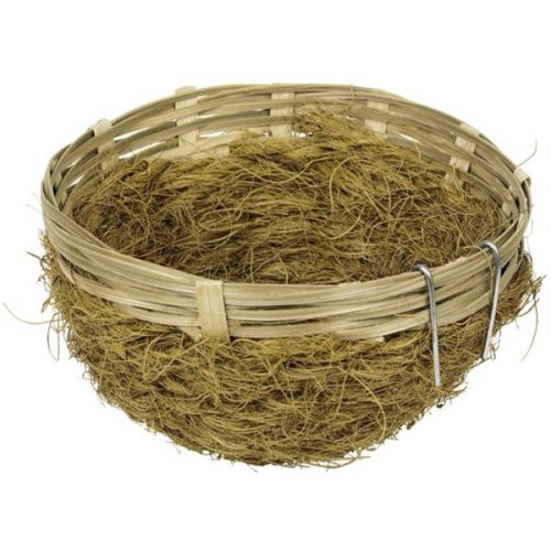 Proutěné hnízdo pro drobné exoty opatřené drátky pro zavěšení do klece. Průměr hnízda: 12 cm, výška: 8 cm.