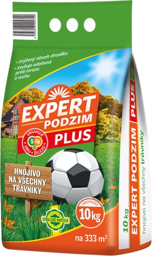 Hnojivo EXPERT PODZIM PLUS je granulované hnojivo, vhodné pro podzimní a pozdní podzimní hnojení všech druhů trávníků. Vysokým obsahem draslíku se zabezpečí vysoká odolnost trávníku proti vymrzání a napadení houbovými chorobami, které se šíří hlavně pod sněhovou pokrývkou. Použitím tohoto hnojiva na začátku léta (červen), se zvýší odolnost trávníku proti suchu v průběhu letních měsíců. Jemná granulace, potlačování mechu v trávníku.