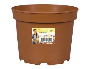 Plastový lehčený v půldorysu kruhový květník v barvě terakoty vyrobený vakuovým tvarováním.