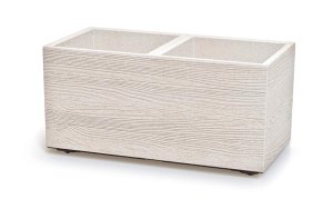 Modulární květináč pro vnitřní i venkovní prostory, kvalitní plastové provedení, stylový design napodobující dřevo. 2 vnitřní prostory s vnitřními vložkami oddělené přepážkou, stohovatelná konstrukce, …