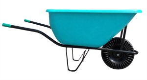 Hospodářské kolečko se 180 litrovou korbou z tvrzeného odolného plastu s ocelovým rámem a odolným bantamovým kolem.