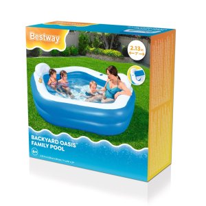 Praktický obdélníkový bazén s kovovu konstrukcí o velikosti 3m x 2m x 0,75m, vhodný k příjemnému osvěžení a relaxu. Objem vody (90% výšky stěny): 3 834l. Připraven pro napuštění vody za 30 minut Nenechávejte děti bez dozoru – nebezpečí utonutí.