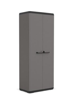 Vysoká skříň, 3 nastavitelné police, nosnost 15 kg/police, uzamykatelná, odolný plast, rozměry 68×39×166 cm.