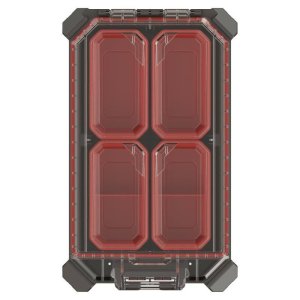 Odolný korpus zhotovený ze směsi polymerů Mechanicky odolné průhledné polykarbonátové víko Blokovací systém pro spojení s MSX Kovové panty Pevné těsnění 4 funkční boxy Délka: 368 mm Šířka: 228 mm Výška: …