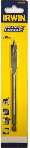 Vrták do dřeva plochý BLUE GROOVE 10 mm IRWIN Rozměry: 10 mm Délka vrtáku: 157 mm Stopka: šestihranná 4 x rychlejší než standardní ploché vrtáky.