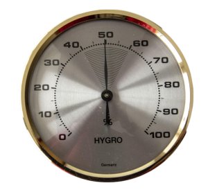 rozměry (pr. x V): 71 x 26 mm hmotnost: 34 g s mosazným kroužkem montáž na zeď Analogový spirálový vlhkoměr neboli hygrometr ukazuje v procentech stupeň vlhkosti ve vzduchu.