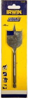 Vrták do dřeva plochý BLUE GROOVE 40 mm IRWIN Rozměry: 40 mm Délka vrtáku: 157 mm Stopka: šestihranná 4 x rychlejší než standardní ploché vrtáky.