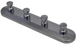 Věšák Igor, 4 kolíky, G2 Cr. povrch: lesklý chrom materiál: ocel rozteč: 145 mm délka: 31 mm šířka: 200 mm výška: 40 mm Celokovový čtyřkolíkový galvanicky pokovený šatní věšák k přišroubování.