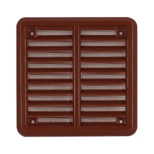 rozměry (Š x D): 100 x 100 mm materiál: plast barva: hnědá Větrací mřížka je vhodná jak do interiéru tak do exteriéru, na zadní straně je opatřena síťovinou proti drobnému hmyzu.