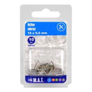 rozměry (D x pr.): 18 x 9,5 mm povrchová úprava: Zn 10 ks Obrazové očko 18 x 9,5 mm se používá pro zavěšení a vystavení obrazů, fotografií na zeď.