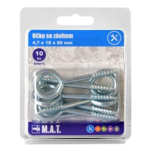 rozměry (D x pr. očka x pr.): 50 x 18 x 4,7 mm materiál: Zn 10 ks Zavřené očko se závitem 50 x 18 x 4,7 mm pro uchycení předmětů a břemen do různých materiálů.