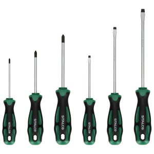 Šroubovák sada 6díl. PHILLIPS, PLOCHÉ STALCO. sada obsahuje 6 ks šroubováků CrV: - SL4 x 80 - SL5,5 x 125 - SL6,5 x 150 - PH0 x 75 - PH1 x 80 - PH2 x 100 Sada šroubováků určených pro montáž a opravy.