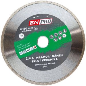 technické parametry: v x š diamantu: 5,5 x 1,8-2,6 mm průměr otvoru: 22,23 mm určen na žulu, mramor, kámen, sklo, keramiku, beton vhodný pro suchý i mokrý řez Diamantové kotouče prémiové značky ENPRO, …