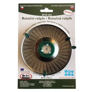 rašple rotační - hrubá univerzální nástroj pro úhlové brusky vyrobena z ocelového plechu tloušťky 0,7 mm a je termochemicky zpracována určena pro obrábění dřeva, plastu, gumy, pryskyřice a jiných "měkkých" …