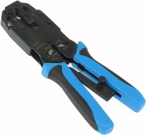 Profi krimpovací kleště s ráčnou, pro konektory RJ45/RJ12/RJ11/RJ9, funkce - střih, strip, krimp.