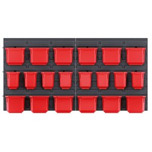 Sada tabulí a zásobníků - Zhotoveno z odolné směsi polymerů. - Sada pro přehledné uspořádání prostoru v dílně nebo ve skladu. celkové rozměry: 800x195x400mm sada obsahuje: 2 ks závěsné pole s celkovými …