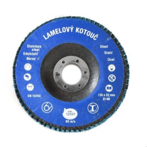 Zirkonový brusný lamelový kotouč průměru 125 mm.