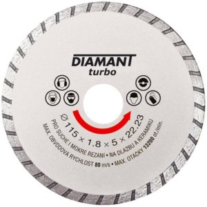 diamantový kotouč DIAMANT turbo vysoce efektivní a rychlé řezání díky speciální konstrukci pevně uchycených diamantových segmentů k nosnému disku kotouče vysoký obsah diamantového prachu průměr otvoru: …