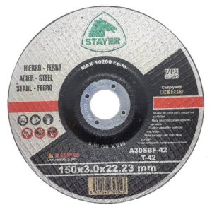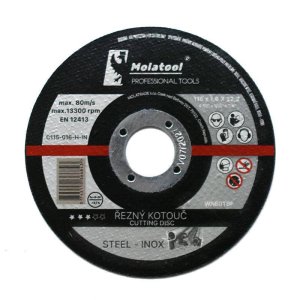 druh zrna: korund pojivo: syntetická pryskyřice na bázi aldehydu pro zvýšení pevnosti armováno dvouvrstvou sklotextilní vložkou max. pracovní rychlost: 80 m/s průměr otvoru: 22,2 mm